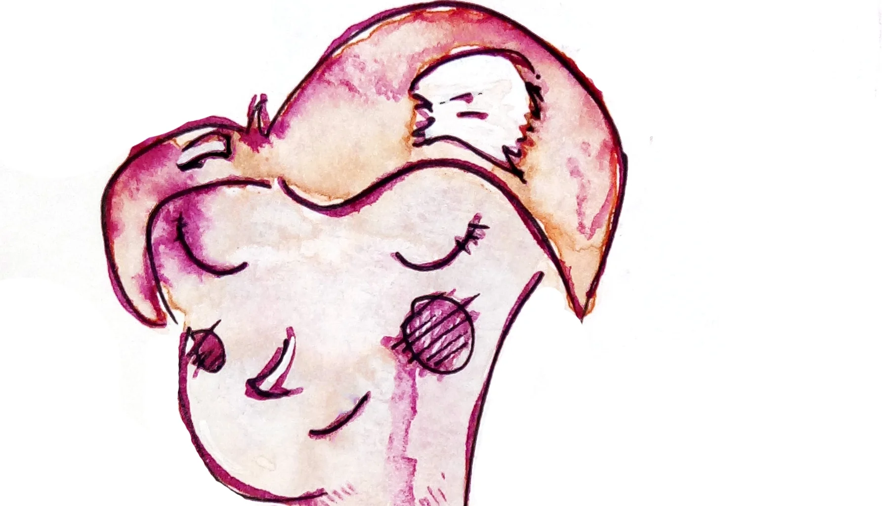Ink painting of a lady in a quiet café in Montréal.